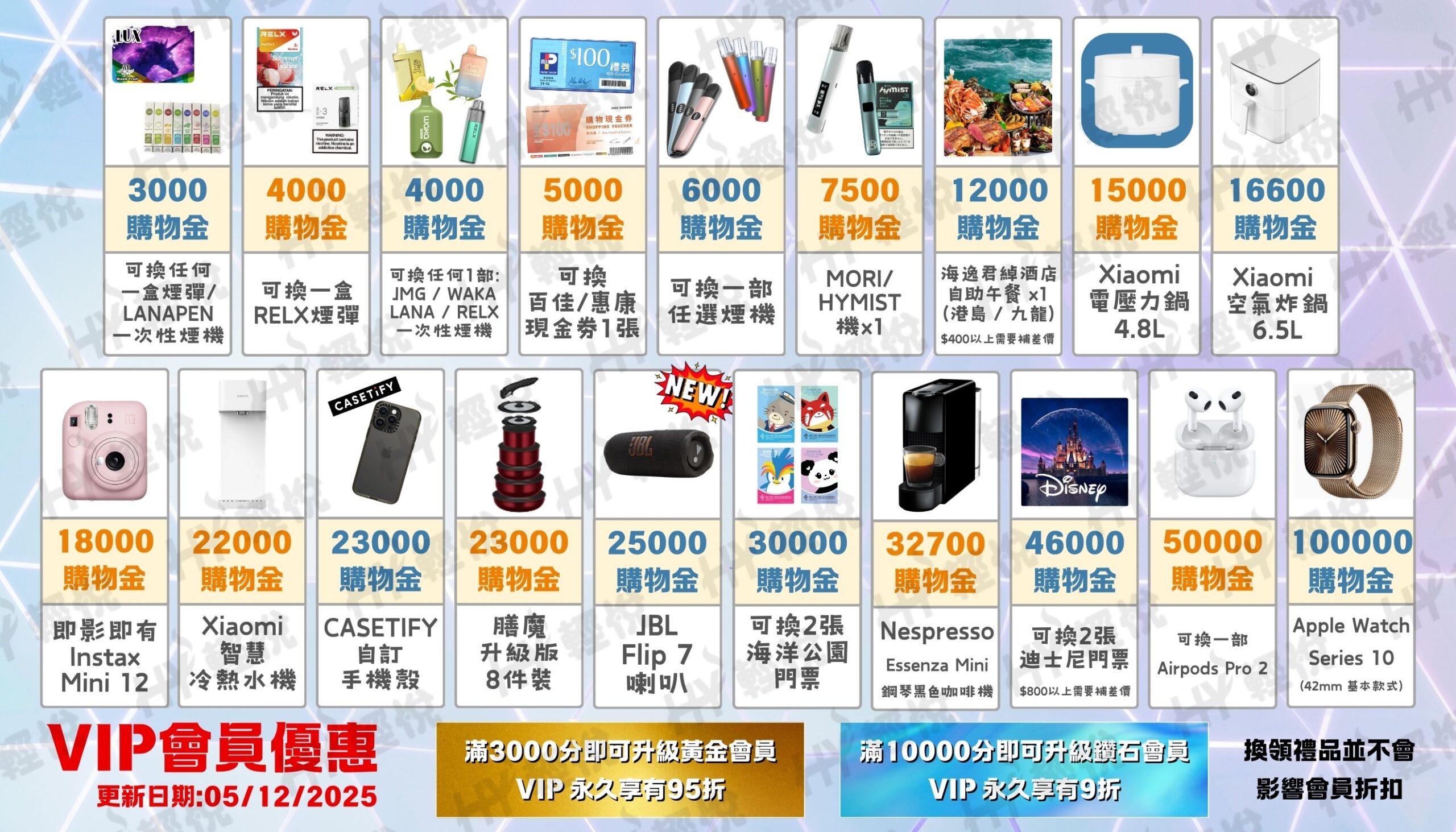 每當您在官網上消費,您將自動獲得購物金的回贈。每消費$1,您就獲得1分購物金,這些購物金可以在未來的購物中使用,為您的電子煙生活增添更多樂趣。更令人興奮的是,這些購物金沒有使用期限,您可以隨時使用,或者積累起來,直到找到最適合的時機。